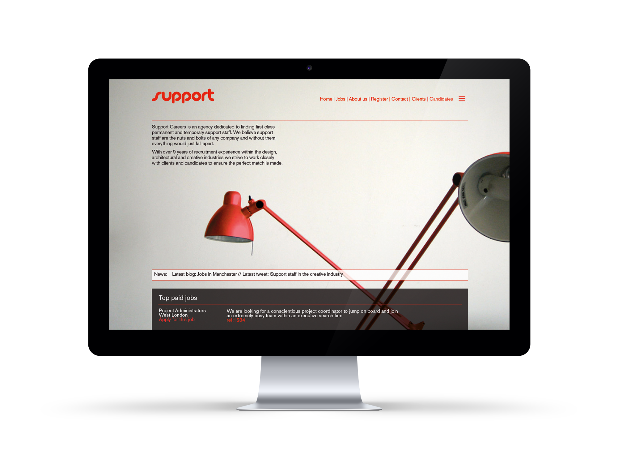 The Support Careers visual identity was created to stand out amongst its competitors. The use striking colours and hero images create a very individual brand to the market.